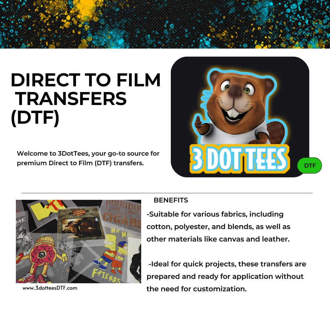 Transform Your Apparel with Vibrant, Long-Lasting Designs. At 3DotTees, we specialize in custom direct-to-film (DTF) transfers, offering top-quality prints that bring your creative visions to life. Shop now and experience unparalleled quality and service!